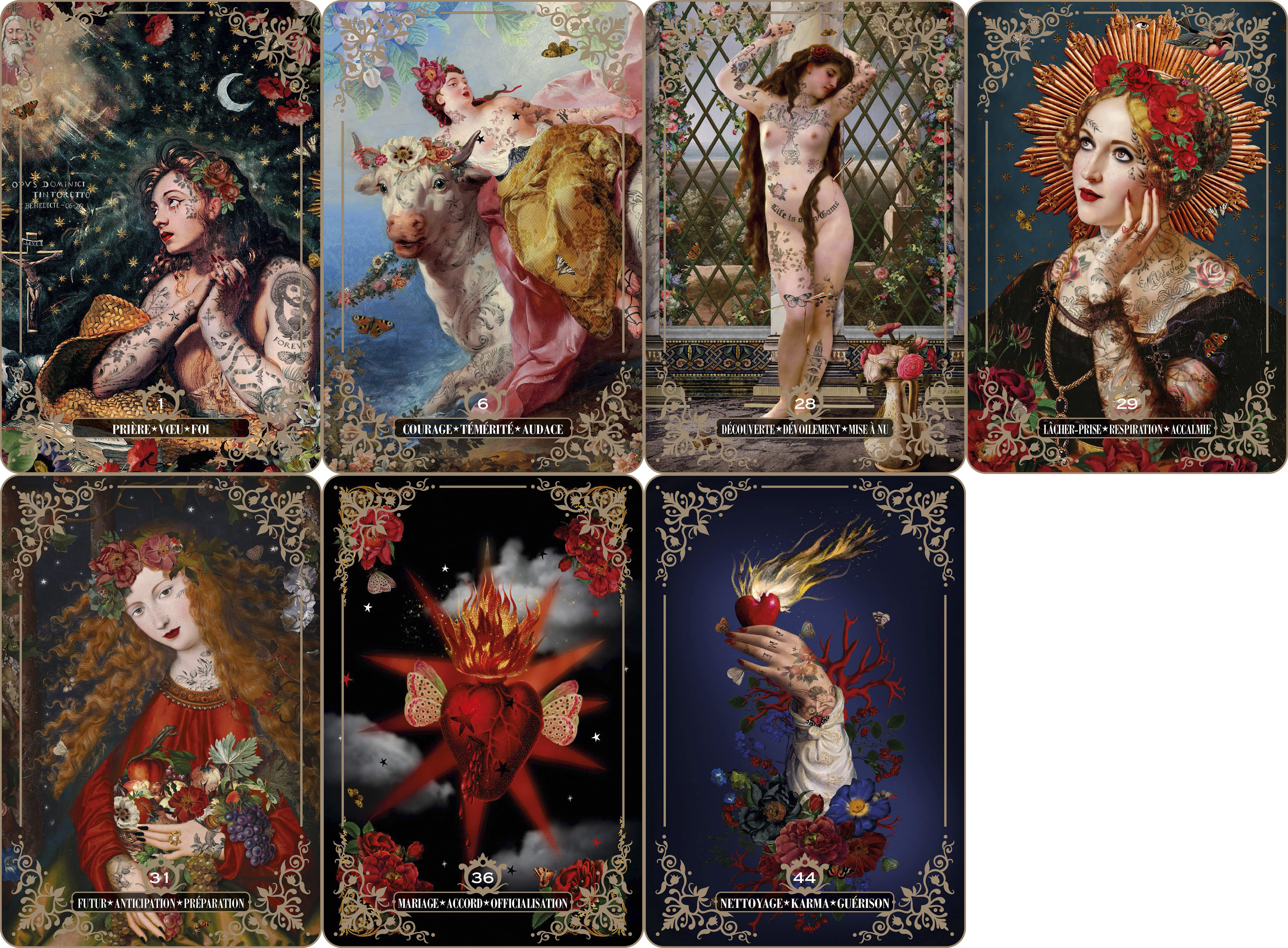 Bénédicte voglio Bene 精彩地繪畫了 44 張神諭卡牌,其靈感來自經典的意大利繪畫和街頭藝術,而當中的信息是由 Sandytatoo,紋身藝術家和靈媒,透過她的靈力所傳達的。