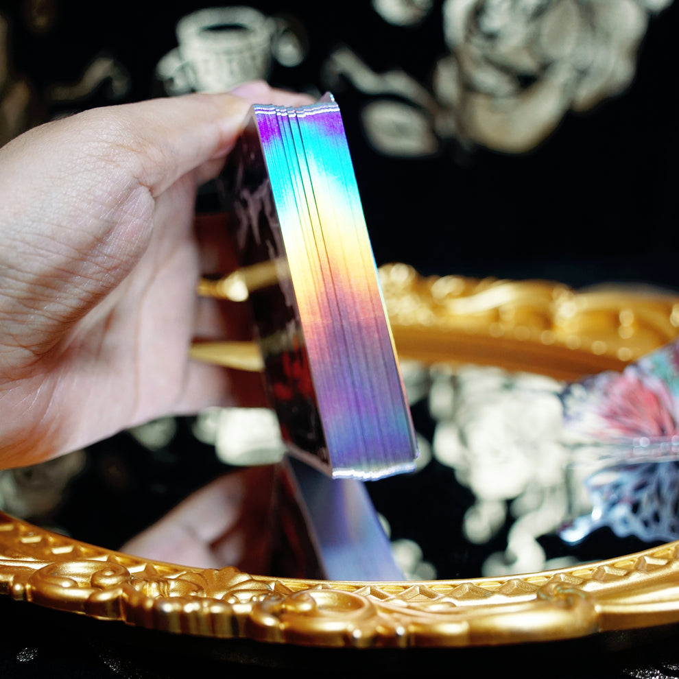 Finish: cardistry oiling, air-cushioning, holographic silver gilded edge
