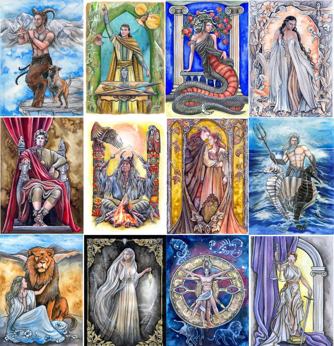 JS Moore 多年前開始製作塔羅牌,當時受到德爾斐遺址和刻在石頭上的古希臘道德格言啟發。這些格言被刻於德爾斐地區的大理石柱、門楣、牆壁和走廊上。