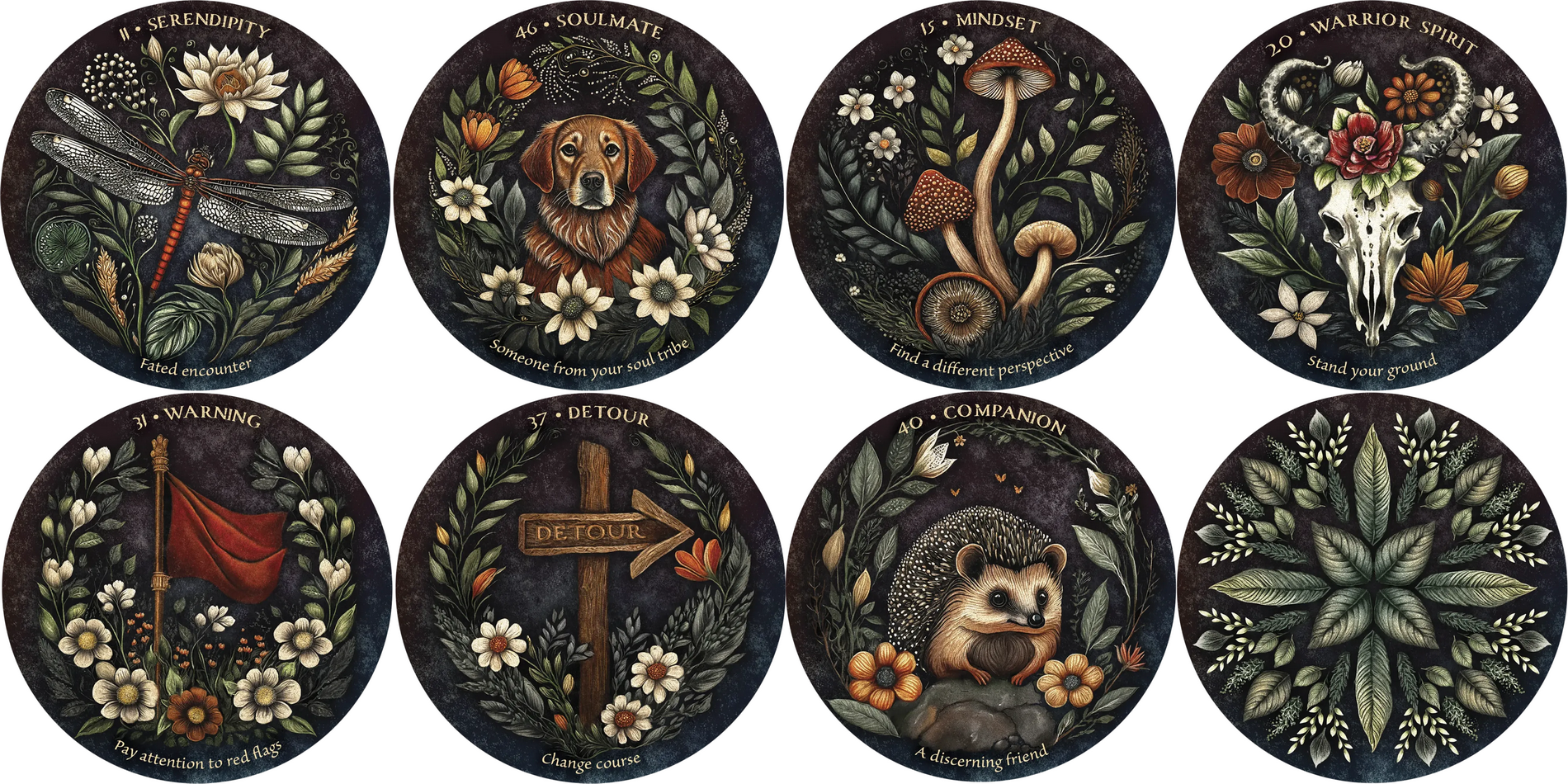 - Illustrated Guidebook: 72 full-color illustrated pages; keywords to contemplate; insightful and empowering messages; three unique card spreads; and notes section for personal interpretations