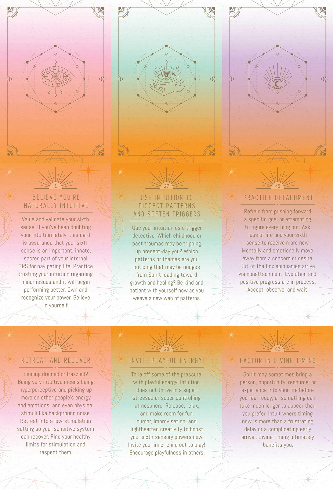 - 64 unique illustrated cards, featuring quotes, prompts, and inspiration for honing your intuitive talents.