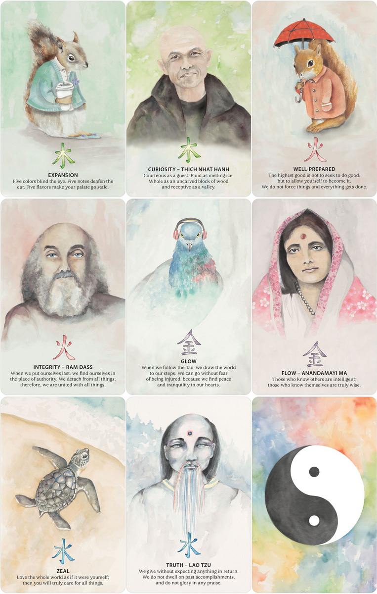 本產品需要付全數訂金訂貨,一般需時約 3 - 10 星期到貨。With inspiration from Lao Tzu’s Tao Te Ching, Nature Quest Oracle invites you on a journey to manifest a mindful life in harmony with nature. Prominent sages (Thich Nhat Hahn, Ram Dass, Ramana Maharshi and Anandamayi Ma) share insights that are in alignment with Taoist philosophy to make the teachings of the Tao accessible and relevant to your daily life. This 50-card deck features charming watercolor art and is organized around the five elements. Includes 132-page full-color guidebook.