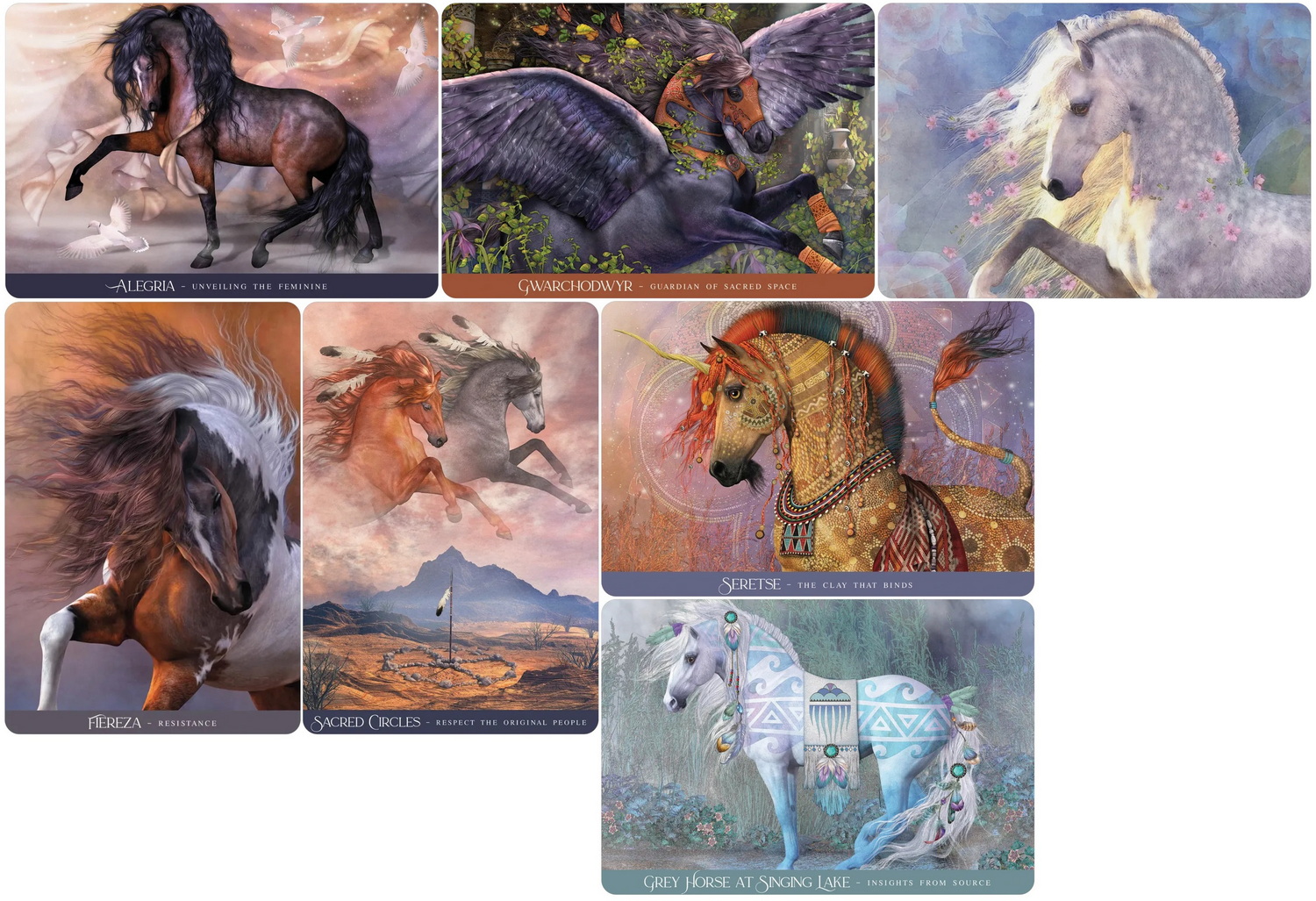 As well as offering honest and supportive responses to your questions, this oracle will deepen your kinship with the horse spirits so you can be enlivened by their freedom, grace, power, and agility — and feel these qualities reawaken in you, unbridled. Kathy Pike is an energy healer and coach whose affinity with horses makes her a unique channel for their collective wisdom. The messages in this exquisitely illustrated set come direct from the horse spirits to show you who you are through their eyes and gently nudge you to find liberty in your strengths and confidence in your instincts. Come home to your body, heart, and authenticity, forever changed by your encounters with Oracle of the Sacred Horse. Includes 41 cards and 144-page guidebook. Gold foil accented box.