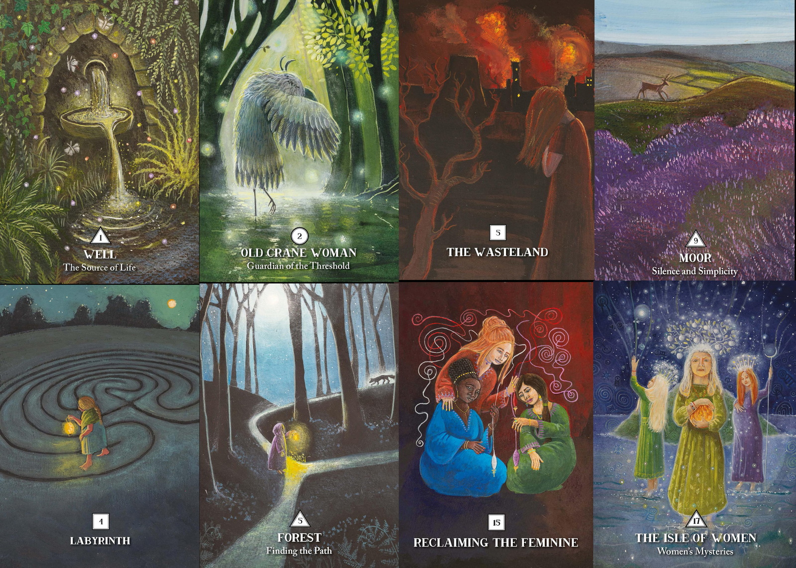 From the inspirational 'Mountain' to the flowing 'River', you'll experience the archetypal qualities of specific places and take spiritual strength from the land. You'll feel supported by women from Celtic myth and folklore—your Allies—like initiatory Ceridwen and The Cailleach, protector of the wild; and you'll find Journey cards that reflect the different stages of the Heroine's Journey and help you follow your unique mythopoetic path through life.