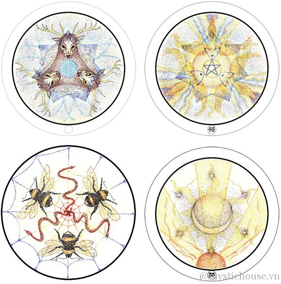 Prepare to be amazed. This 76-card circular deck is filled with magical symbols and images inspired by the natural world, and printed on clear plastic to be read in layers. Form inspirational mandalas and seek answers from kaleidoscopic whispers with this innovative deck. The shape allows each card to be rotated to form a new image when placed atop another card! Combines elements of shamanism, astrology, and ceremonial magic, to view underlying patterns of life, bring beauty to chaos, and demonstrate the interconnectedness of all things. The ideas developed in The Transparent Tarot go one step further with this Oracle deck, finding completely new ground. Infinite combinations of animals, landscapes, planets, guides, elementals, and more, are key to intuition and imagination!