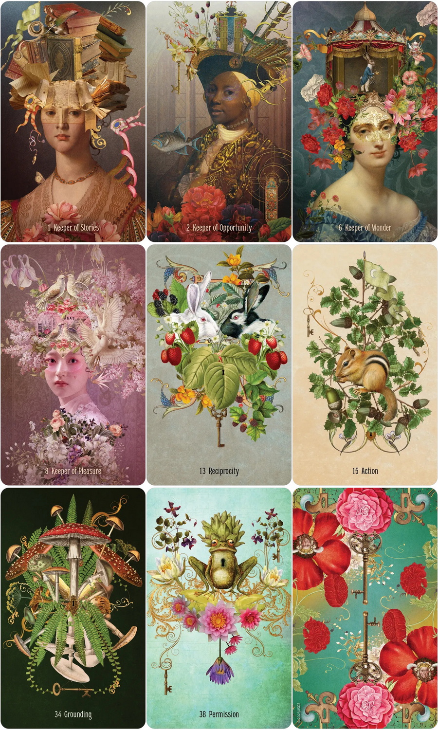 There is a secret garden inside you, fortified by stone walls old enough to remember the moon’s first name. In this magic garden, every plant, flower, insect and animal is a portal, a passageway to secret knowledge and illuminated wisdom. You already have the keys to open each portal. This deck and guidebook are intended to accompany your own intuition as you navigate your way through the garden. Question-keys and answer-locks, when fitted together, open ancient passageways and doorways of opportunity, where you will discover wisdom treasure. Visit the garden to unlock the secrets still tucked away in your own potential. Set includes 44 gold gilt-edged cards, 108-page lushly illustrated guidebook and organza drawstring pouch.