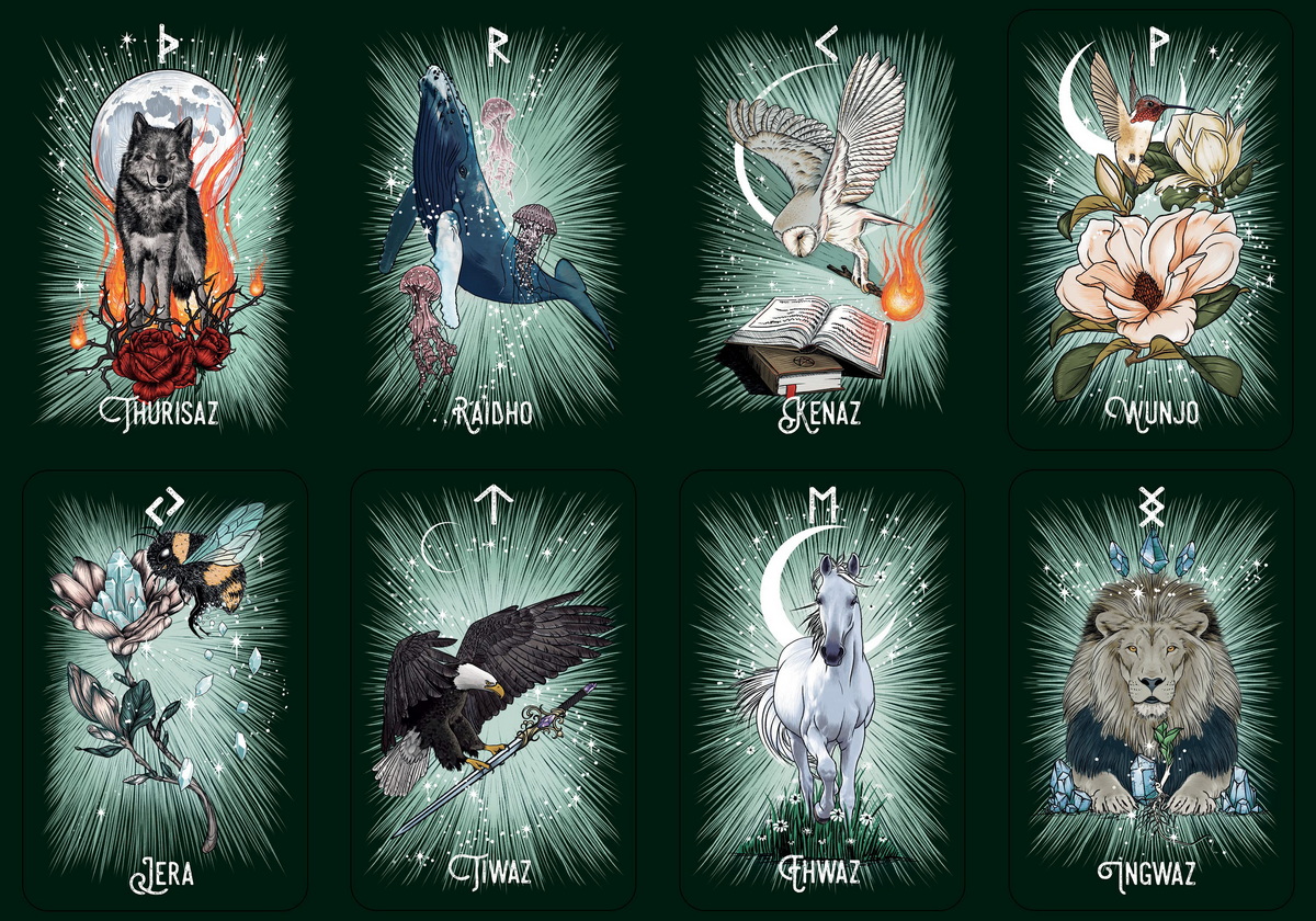 Owls, ravens, snakes, and other magical animals dance across these cards. Each animal embodies the meanings, qualities, and energies of the various runes they have been chosen to symbolize. These cards are perfect for daily divination practice or as a tool to focus energy during rituals and ceremonies. Ask the cards for guidance, luck, protection, or new love.