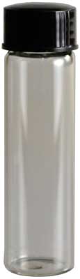 Clear glass, round 2 dram bottles with caps. Best Quality.