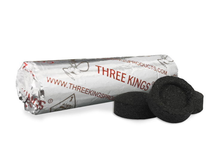 Three Kings Charcoal briquettes have been made in Holland by René Schönefeld Incense and Charcoal Manufacturing since 1936. Using only the best ingredients combined with the almost 80-year old production techniques, Three Kings charcoal briquettes ignite easily, are odorless and have a smooth, long and even burn.