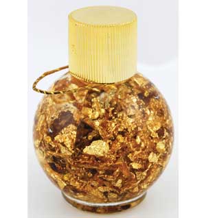 Real gold flakes in water. A very powerful symbol to attract wealth. It is important to use real gold or it is said it will not attract real prosperity to you.