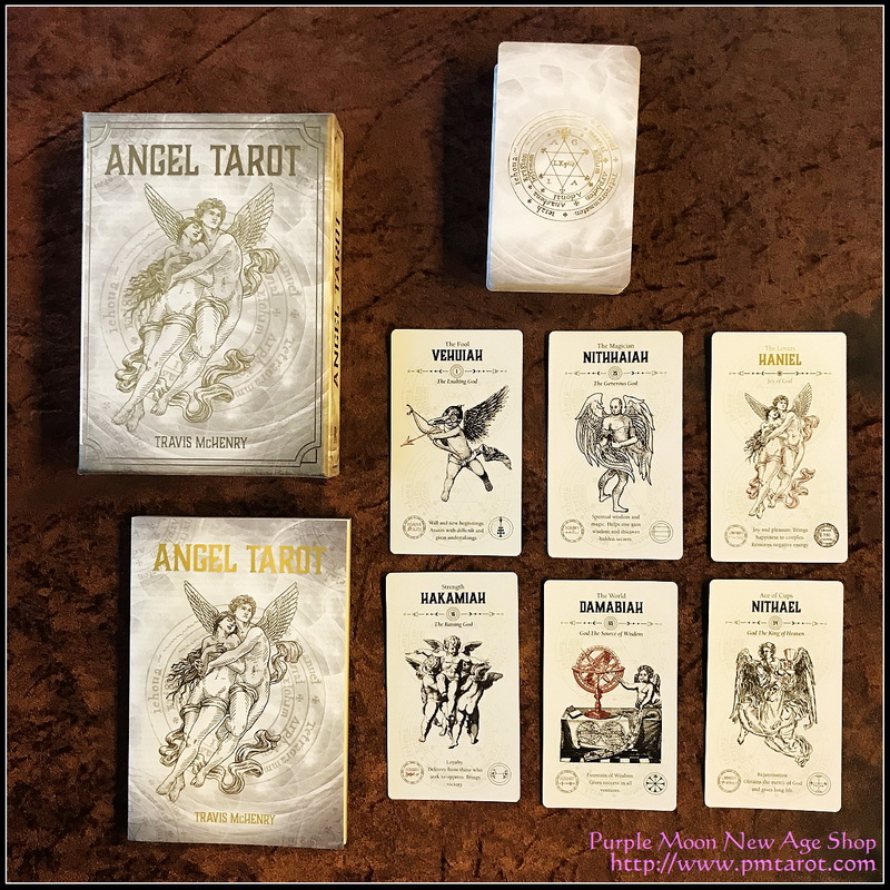 The Angel Tarot cleverly combines the major and minor cards of the original tarot together with medieval angels of ceremonial magick. Move forward on the Chariot with the Angel Michael, summon the Moon with Gabriel, meet Elemiah the Queen of Wands or seek the Hierophant in Angel Hazel.