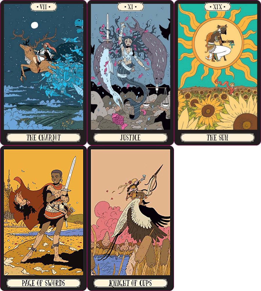 The Major Arcana is transformed as each card introduces readers to famous witches throughout history, literature, and mythology. They encompass sage crones, ancient fairies, and historical women who spoke out and stood their ground. In the Minor Arcana, witches, their tools, and magical animals are divided into categories that correspond to the four elements of fire, water, air, and earth.