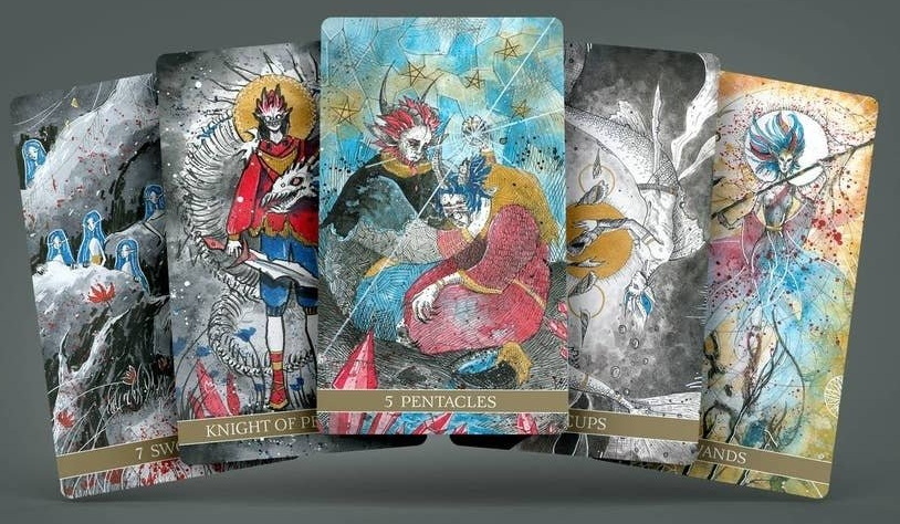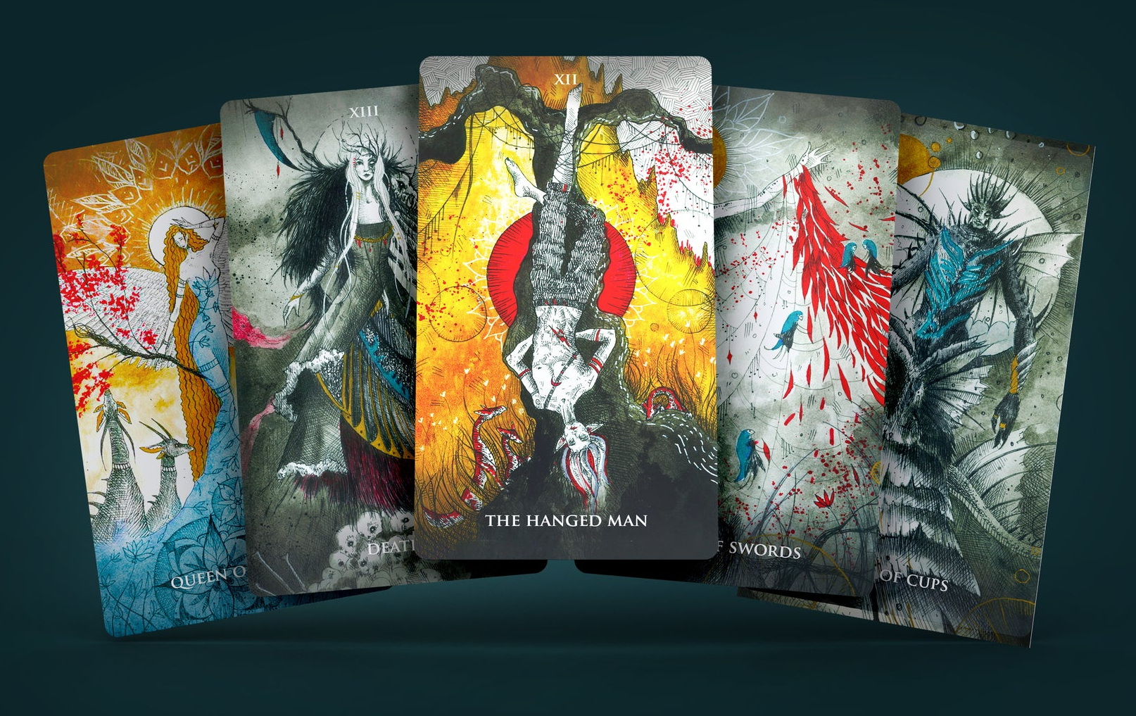 Tarot of the 4 Worlds is a collection of images, thoughts, spirits, designed to plunge into the unknown and help with understanding the familiar reality, and share your strength. If you listen carefully, you can hear snatches of songs and the noise of foliage, how water beats from a rock, how stones fall somewhere in the depths, about which the wind rustles in the endless sky. Perhaps you will be lucky to see them in a dream, their freedom, their life and death.