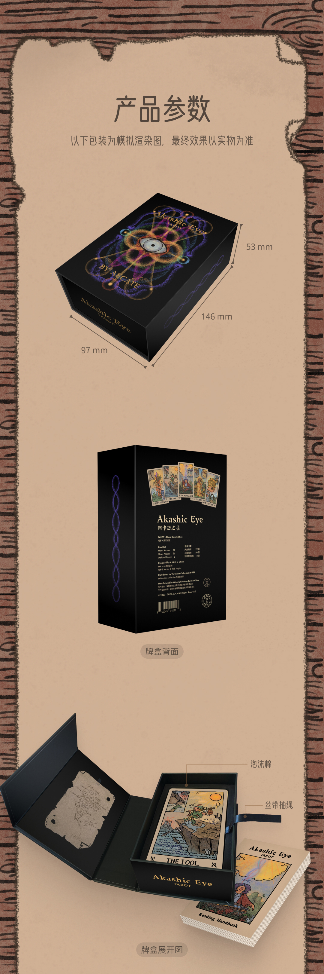 本產品需要付全數訂金訂貨,一般需時約 2-4 星期到貨。這套牌是從阿卡西記錄的概念中汲取靈感,被設計為獲取精神層面和個人指導的工具。其獨特之處在於每張卡牌上都有顯示反向圖像,幫助使用者更直覺及更好的學習使用反牌。