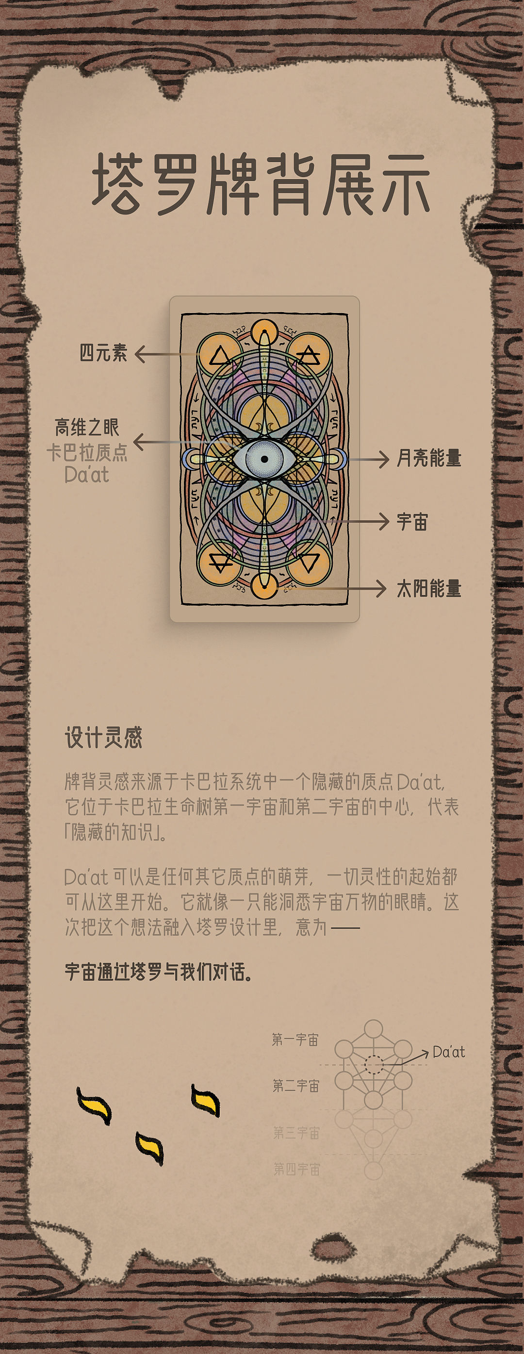 除了本來的 VIII Justice 及 XI Strength 替換牌外,額外還有七張牌,分別是:Tree of Qabalah, Weekday Heptagram, 12 Signs of Zodiac, Tarot in Zodiac, Essential Dignities, The 4 Elements 以及 Runes
