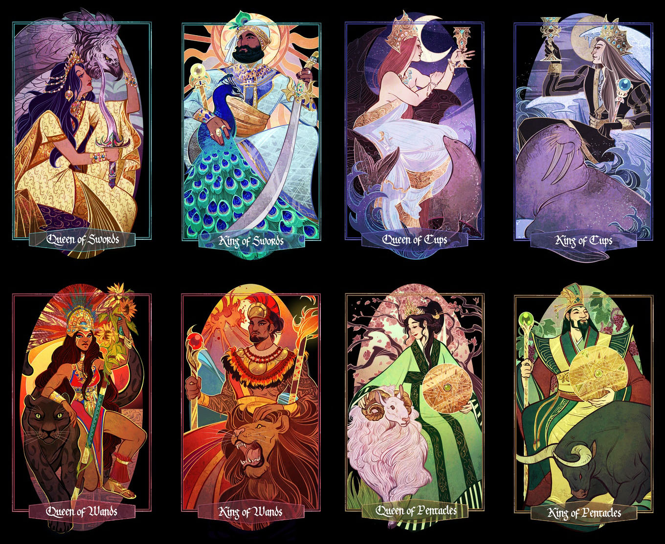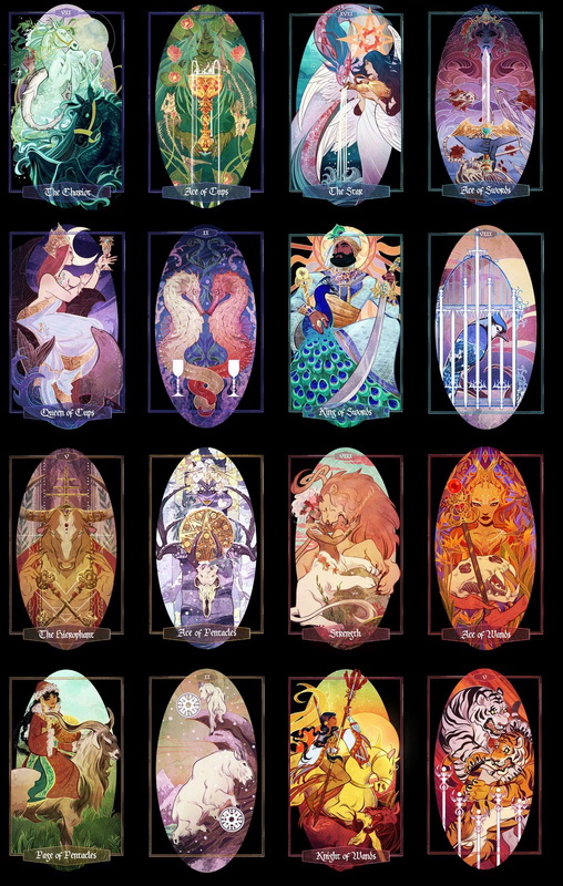 以神話生物和自然為背景而精心創作的塔羅牌。