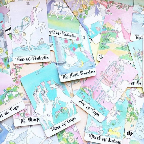 Basically this deck is the mirror image of the Rider Waite Tarot, except all the humans are Unicorns and it's all pastel. The added element was the energies of the crystals.
