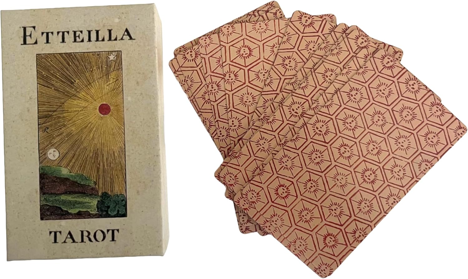 本產品需要付全數訂金訂貨,一般需時約 2-3 星期到貨。The Etteilla Tarot Deck was first produced in Paris in the 18th century by "Etteilla", the pseudonym of Jean-Baptiste Alliette (28 August 1738 – 12 December 1791). He was the first French occultist to popularize tarot divination to a wide audience, and therefore the first professional tarot occultist known to history who made his living by card divination. Etteilla published his ideas of the correspondences between the tarot, astrology, and the four classical elements and four humors, and was the first to issue a revised tarot deck specifically designed for occult purposes . This deck is comprised of 78 cards: the normal 22 major arcana and 56 minor arcana (with french names). Along with the deck comes a two piece box and a guide booklet.