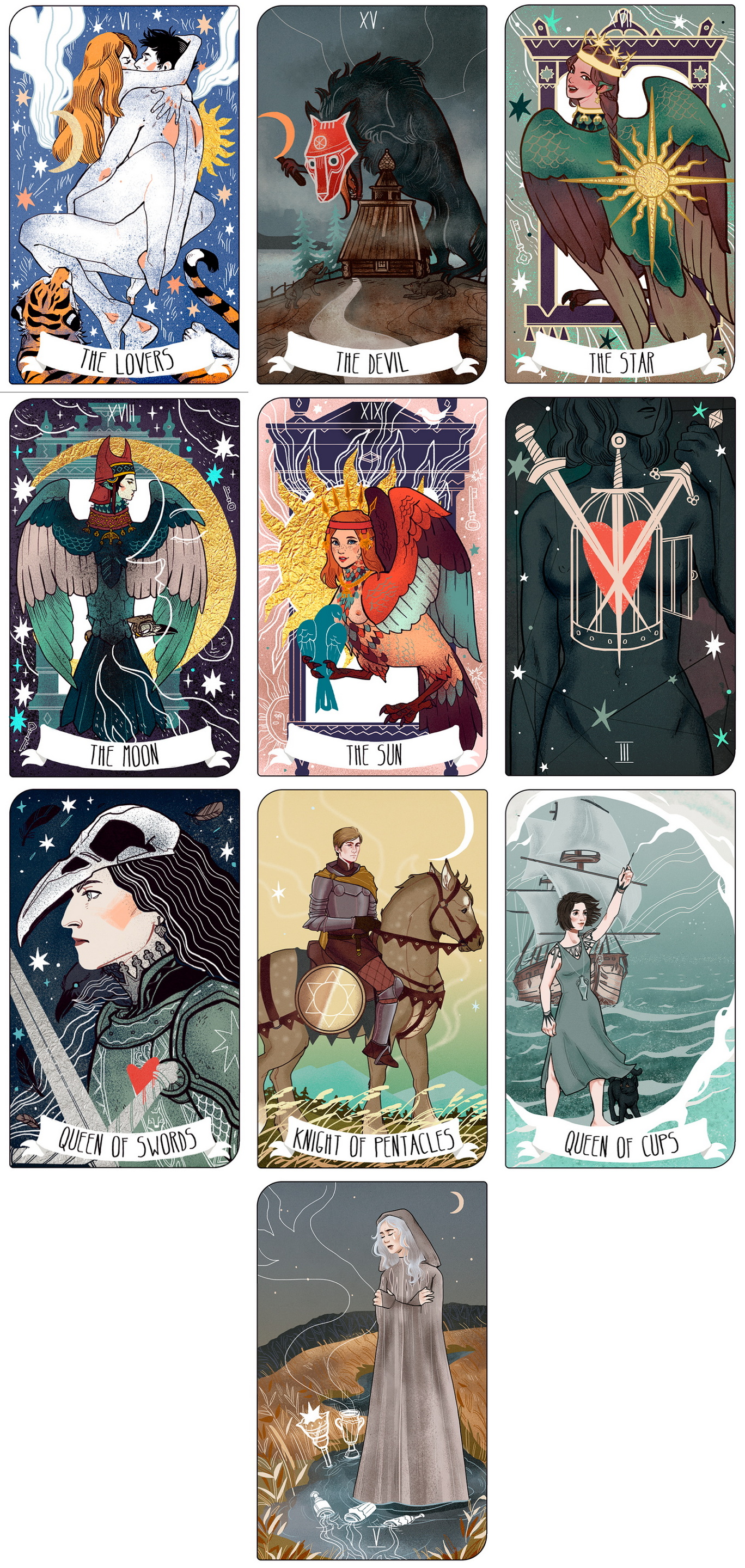 這套牌裡有斯拉夫 (Slavic)、斯堪的納維亞 (Scandinavian)、凱爾特 (Celtic)、希臘和許多其他神話和傳說,其中的人物與現代風格交織在一起,令你感覺到在某些地方與真人交織在一起的場景。 這套牌是根據夢境、感覺和對象徵主義的內在理解的圖像直觀地創建的。