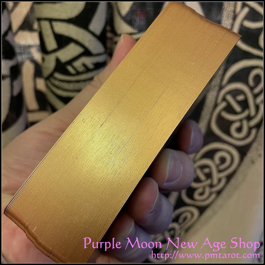 在整個牌組中,月亮的象徵意義顯而易見,月相位於每張牌的頂部和底部。 巨大的發光滿月位於中心,闡明了特定卡片的含義。 每張卡片上月亮的象徵性存在和明亮的宏偉,提醒我們月亮的能量代表著完成、力量的高度和清晰度的頂峰。