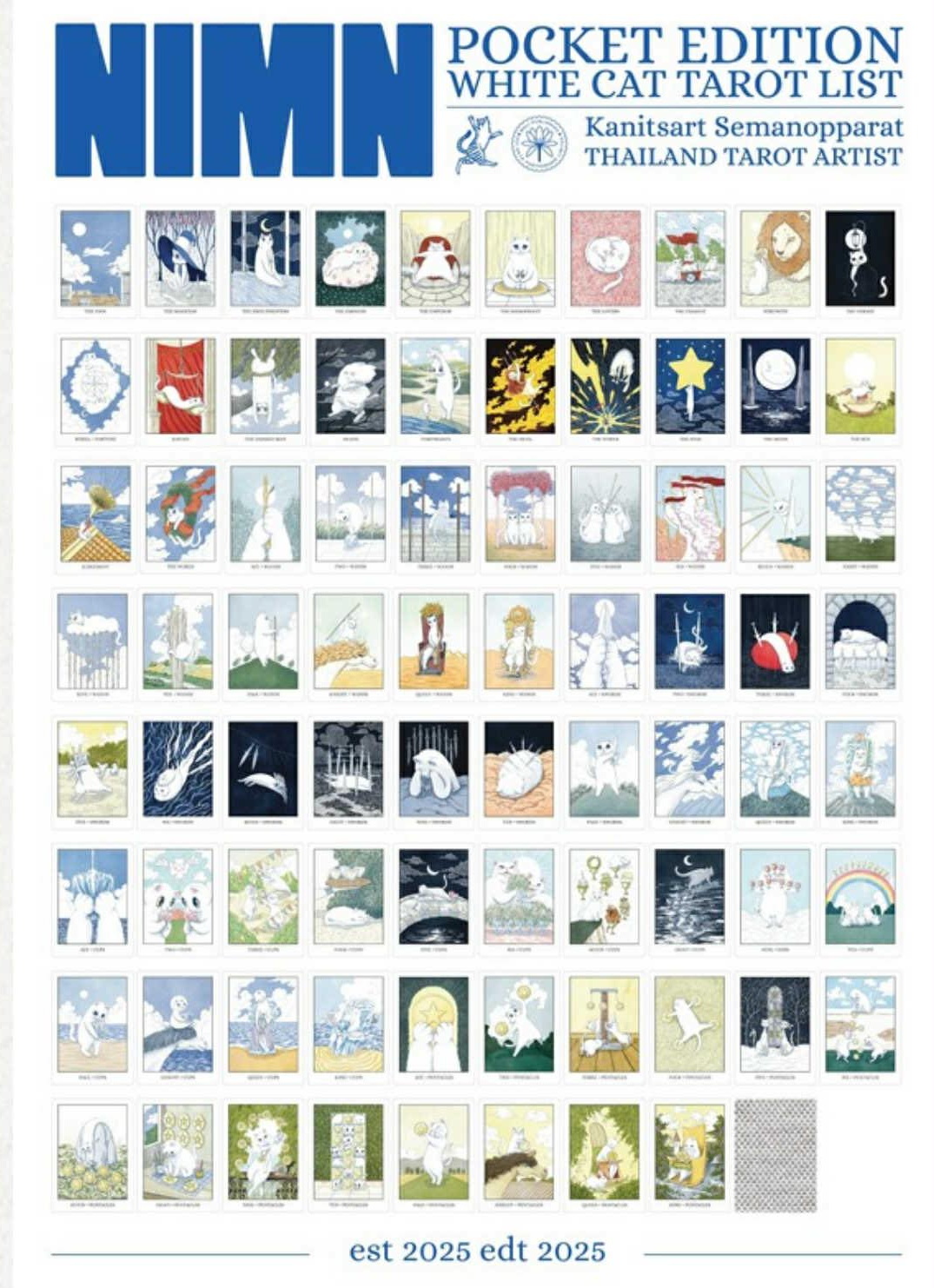 Created by the Thai artist Kanitsart S, who published alongside the beloved Lunalapin Tarot, this deck continues the tradition of cat-themed wisdom, but in a softer, dreamlike tone. The artwork’s tender lines and soothing palette make it a joy for the eyes, turning each spread into a magical moment of reflection. Whether you are a seasoned reader or just beginning your tarot journey, the Nimn White Cat Tarot is more than a tool—it’s a gentle companion that helps illuminate your path