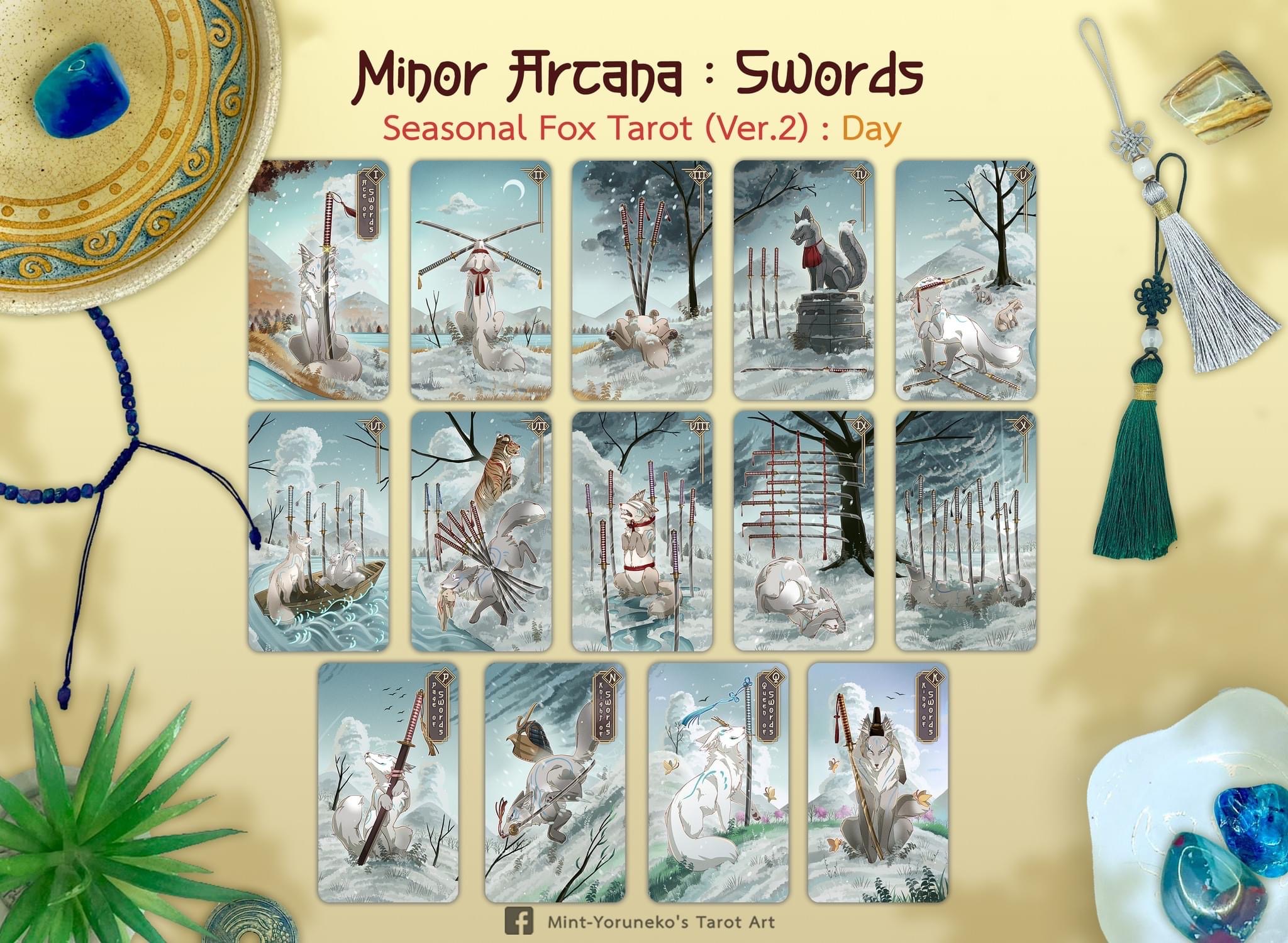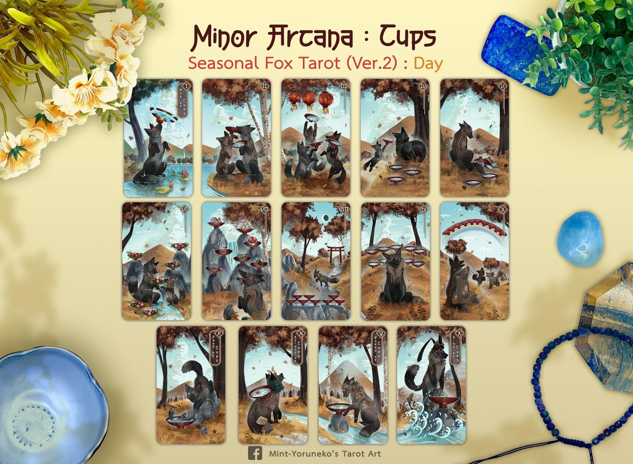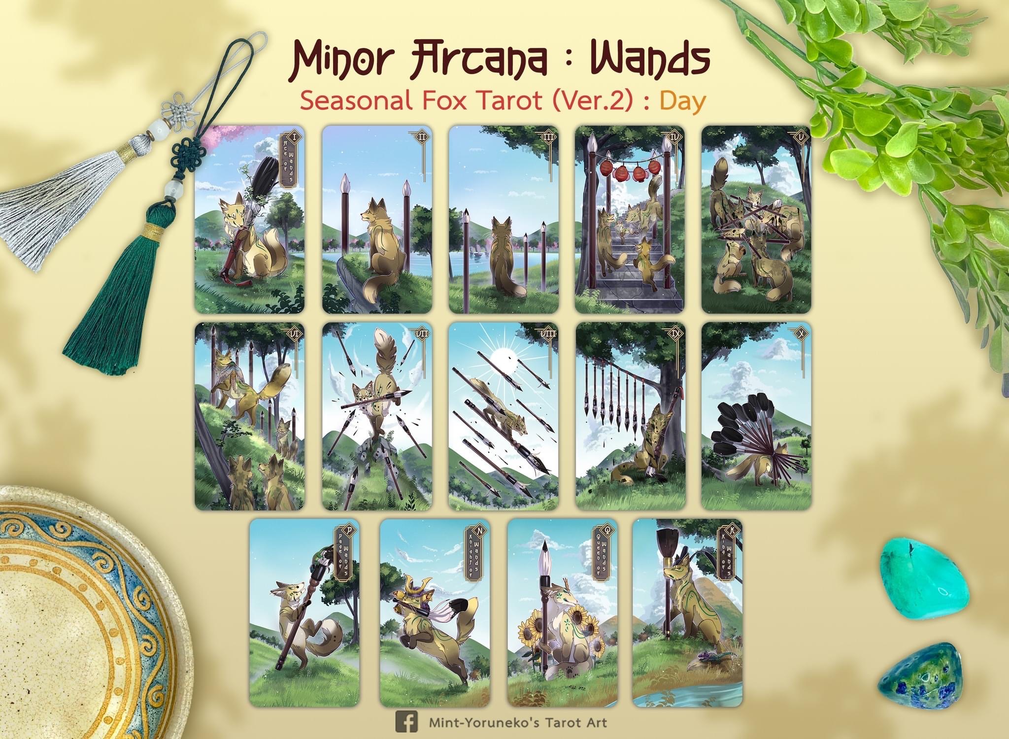 使用 Seasonal Fox Tarot II 來揭開你直覺的魔力,這是一套 78 張塔羅牌,深深植根於日本民間傳說和聖狐精靈的神秘智慧。 無論你是初學者還是高級練習者,此套牌都提供根據你的需求量身定制的兩個不同版本:DAY 版本和 NIGHT 版本。