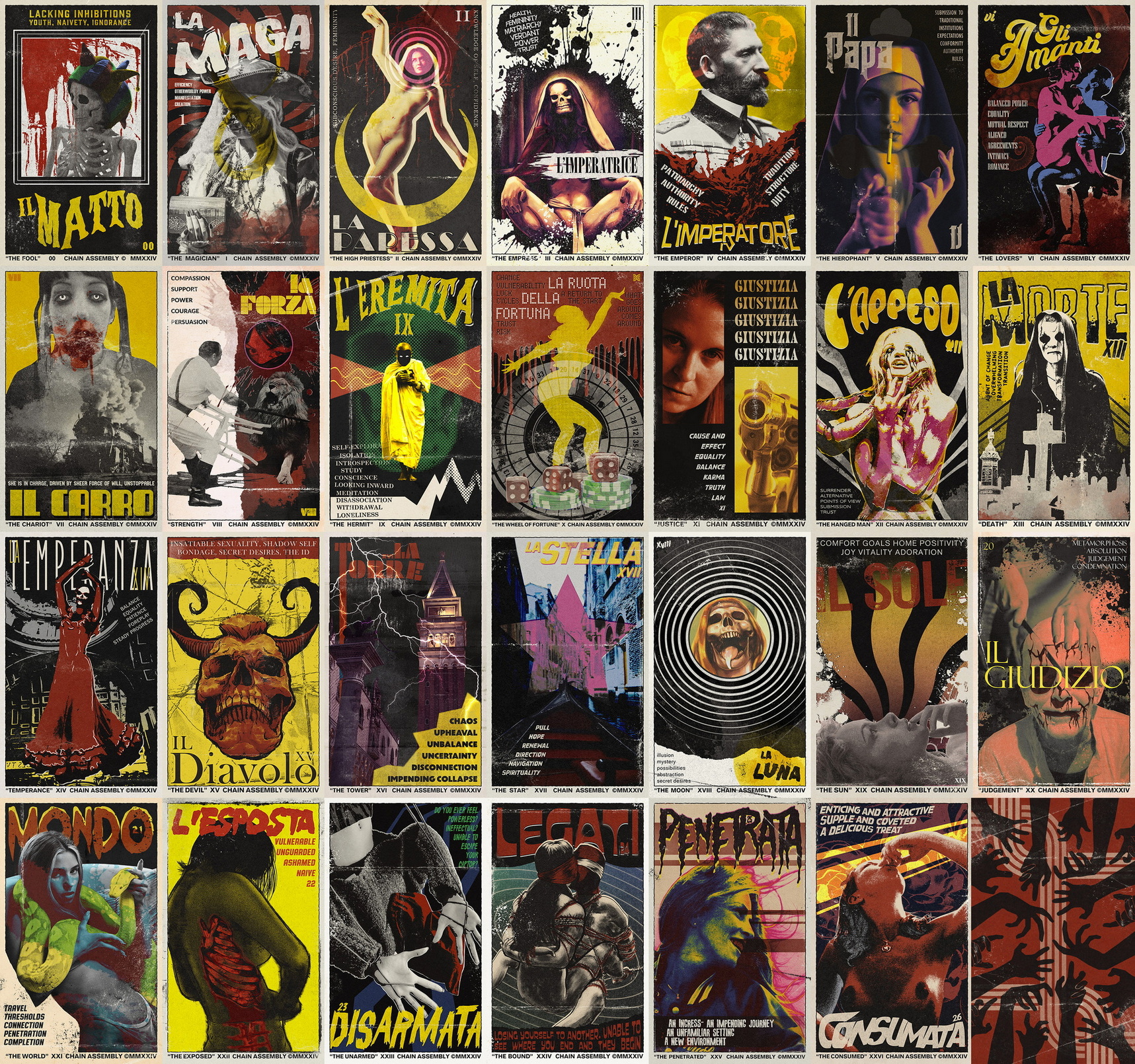 Tarocchi Gialli is a new tarot deck inspired by the mesmerizing movie posters of Italian Gothic Horror films of the 60s and 70s.