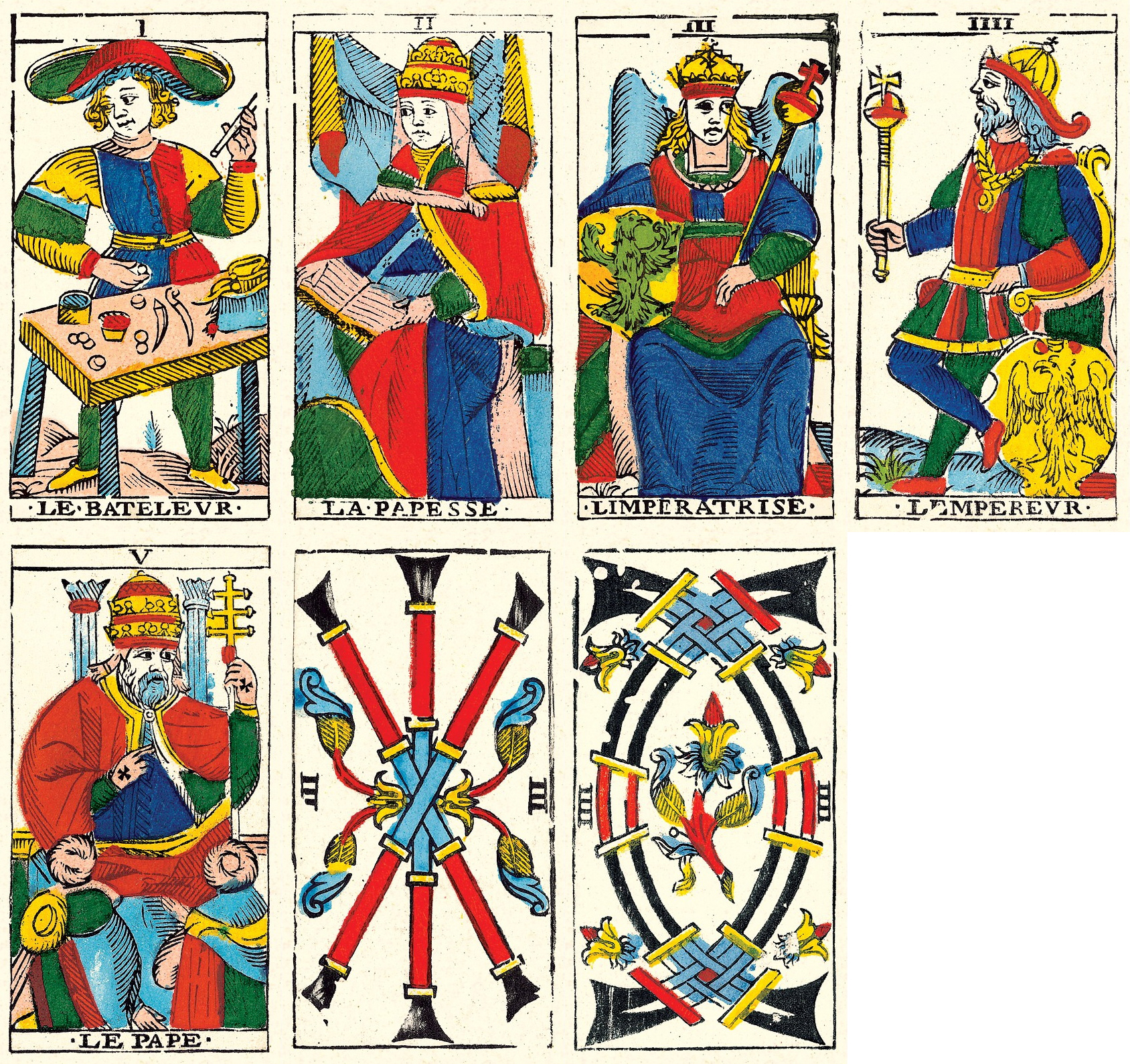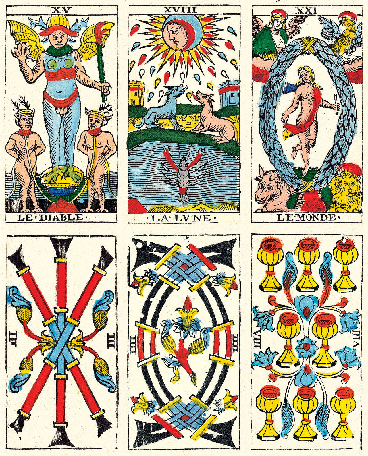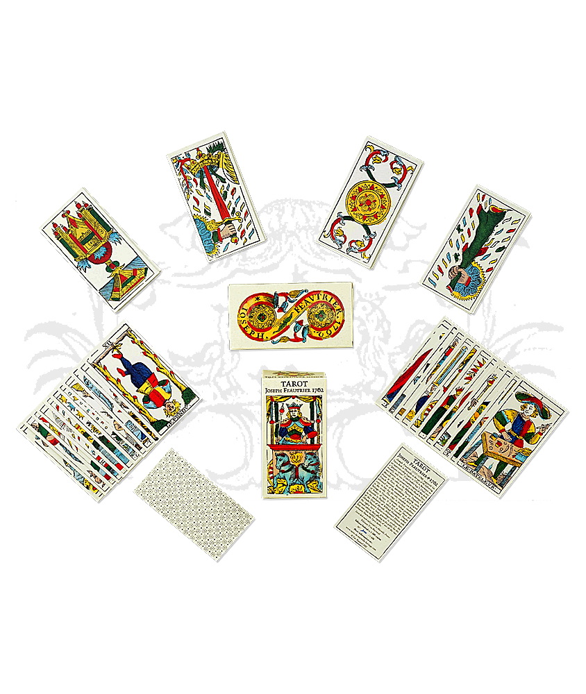 Complete 78-card copy, authentically from Marseille, of very fine workmanship. A tarot worthy of being reproduced to satisfy collectors and users of tarots. Edition based on the beautiful and unique original complete copy of this deck, kept at the the Museo del giocattolo of Naples Italy. Collection of Professor Vincenzo CAPUANO.