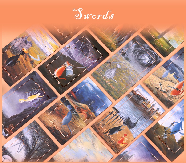 本產品需要付全數訂金訂貨,一般需時約 3-4 星期到貨。Cats, throughout human history, are often objects of fascination for us. I ve created this tribute to our beloved furry friends. I hope you enjoy the whimsical oil paintings on each card, displaying the journey through the Tarot from a feline perspective.