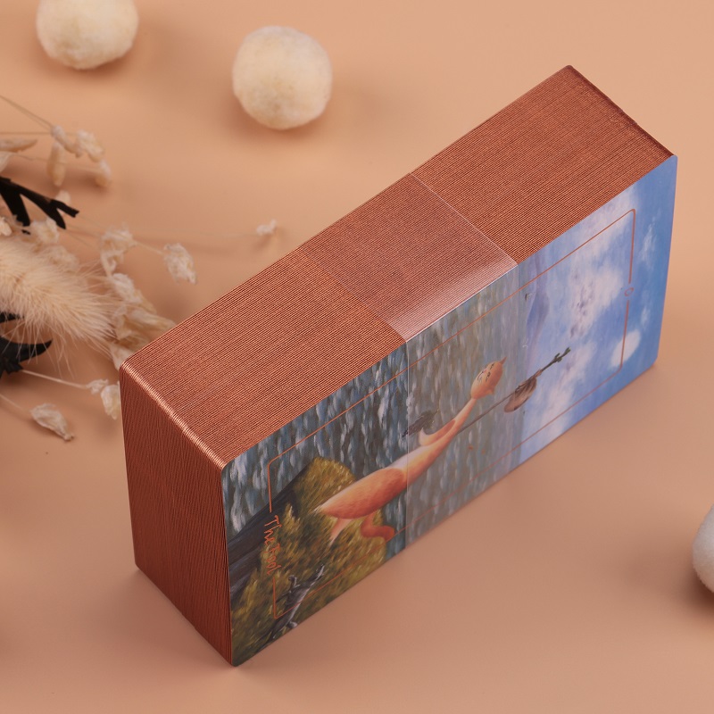 Cards printing: CMYK printing + brass foil printing for the front + skin-like texture velvet lamination for both sides
