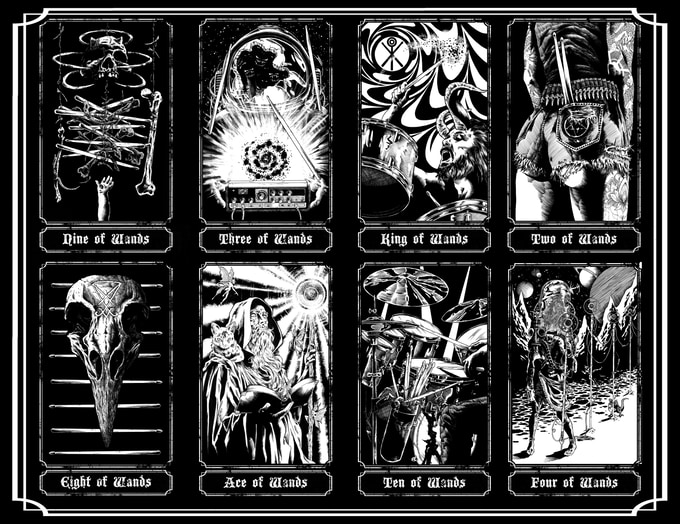 Each card was hand drawn in ink by Jonathan Grimm, creator of The Bound Tarot.