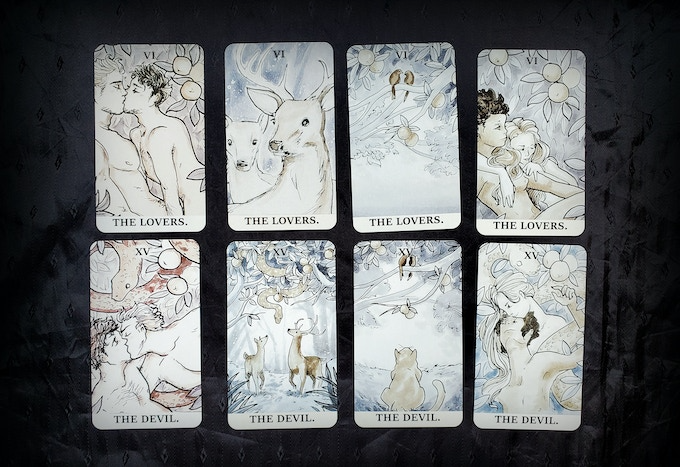 Ink Witch 具有許多塔羅牌中的傳統主題和符號,並帶有一些現代元素。你會看到參考北歐和希臘神話、異教女巫、童話故事、亞瑟王傳說以及 21 世紀日常生活中微妙而強大的魔法的插圖。