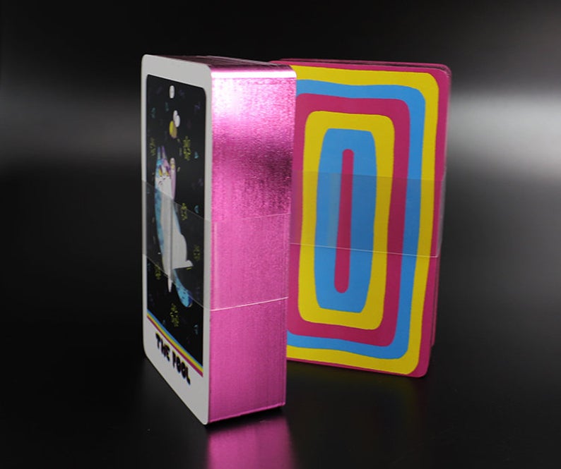 The Weird Cat Tarot is a fun and lively tarot deck inspired by cats and colorful design. It is a lighter and more friendly version of the tarot and great for beginners and seasoned readers that are enthusiastic about cats.