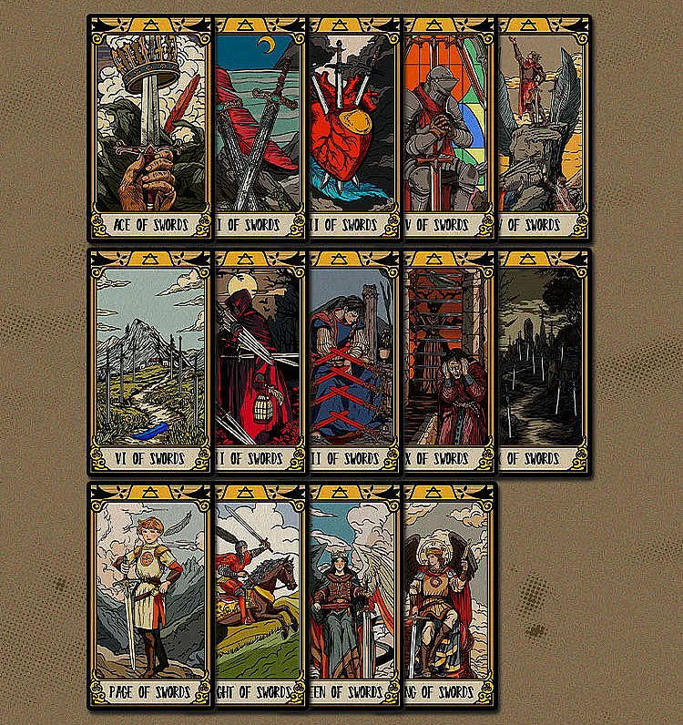 牌面為神話故事和民間傳說以插畫的形式加以描述,整套牌像是一個古老的故事集和歷史神話。神話是生命的基礎,不僅解釋著世界的誕生、人類的起源,更蘊含著人類的愛恨與善惡,卡牌是神話的重要載體,也是閃閃發光的藝術作品。