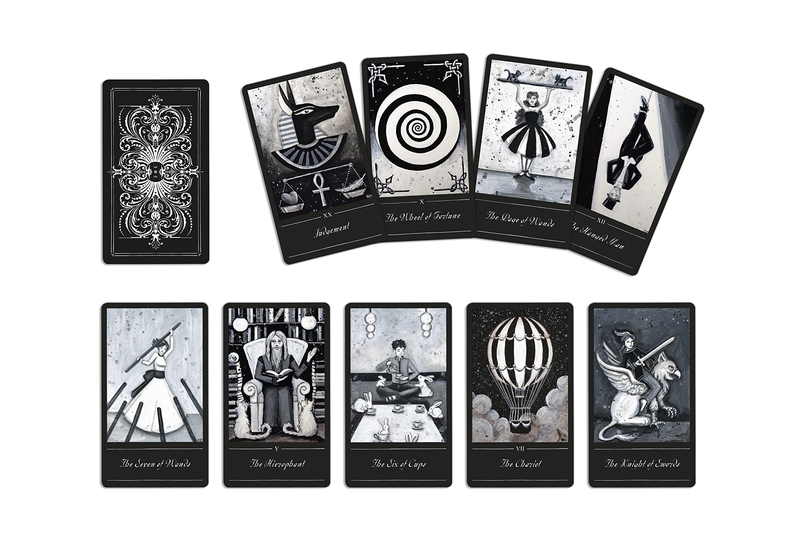 Welcome to The Phantomwise Tarot. This black-and-white world is a little bit circusy, a little bit Wonderland, and a little bit nocturnal phantasia of its own invention. It is a mix of myth and fairy tale, where each individual you meet may be an illusion, reflection, or distortion.