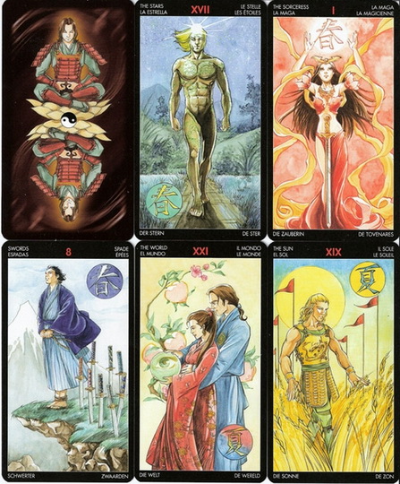 Spring, summer, autumn winter: the seasons are the first measure of time and the cyclic nature of things. One is connected to the other and they transmit the sense of continuity and change in every situation. These Tarots show a universe of connections and references, constructed around the fantastic epic of the Orient