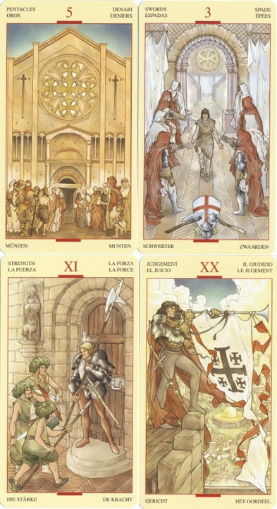 有關於聖杯的傳說是來自亞瑟王的時期,他們去搜尋關於生命的聖杯,從而找尋屬於騎士時代裡,理想的完美的靈性富足。這個來自東方的傳奇告訴人們由聖殿騎士帶著聖杯抵達到歐洲,期望將中世紀神秘主義統一化,而這一個傳說將會在這副塔羅牌上顯現出來。