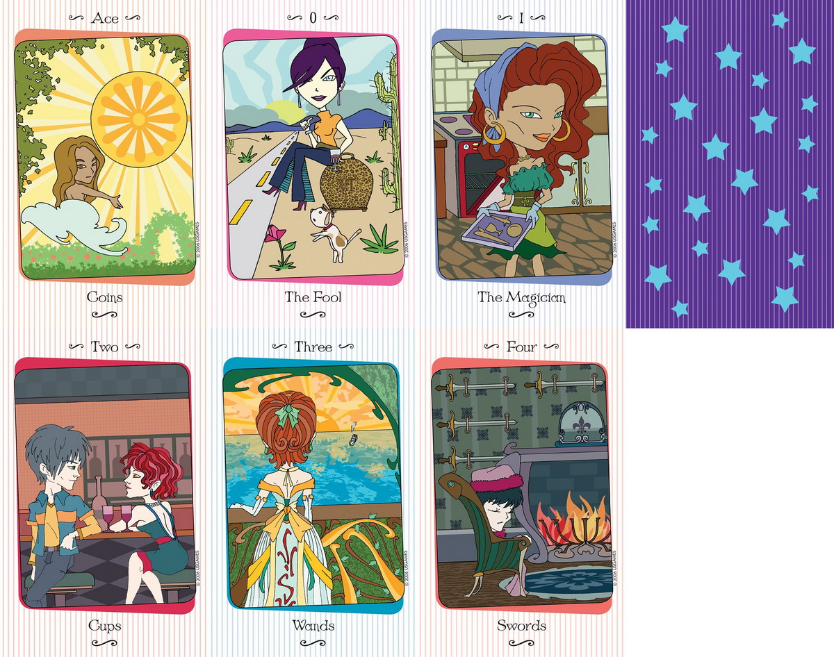 Taking their inspiration from pop culture, the sassy but sage characters of Vanessa Tarot playfully reinterpret traditional female roles. With humor, glamour, and an attitude of adventure, the daring darlings of Vanessa Tarot share all their arcane secrets. This charming deck invites readers to join in the joy ride exploring life through the fanciful imagery of tarot. Presented in a keepsake tin, Vanessa Tarot includes 78 cards with 30-page instruction booklet.