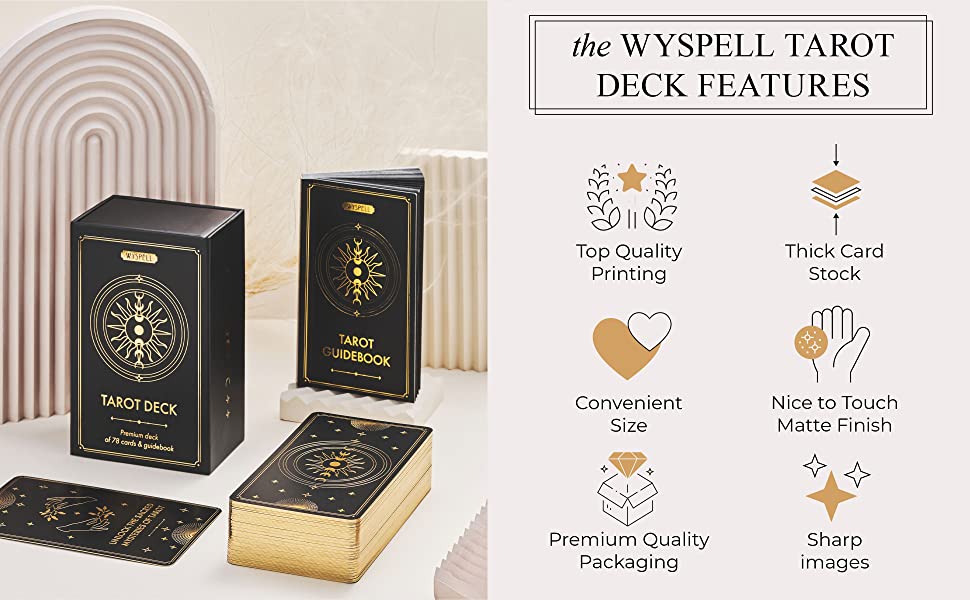 Classic tarot cards for beginners with guidebook of 200 pages includes all cards tarot meaning and a magnetic tarot deck box. The Wyspell tarot deck is a unique gift for any beginner tarot enthusiast!