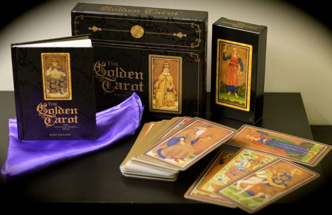 The accompanying book provides a history of Visconti-Sforza cards, 35 of which are now in the collection of the Pierpont Morgan Library in New York City. The symbolism of the different cards is described, along with explanations of different ways to arrange the cards when seeking information about different aspects of life.