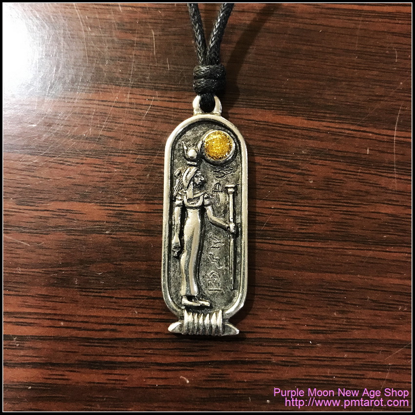 哈索爾是愛情,音樂和舞蹈的女神。代表性格外向,迷人的,熱情的,浪漫的。 吊墜包括黑色棉質可調項鍊。祂代表 5月26日至6月24日的生日。