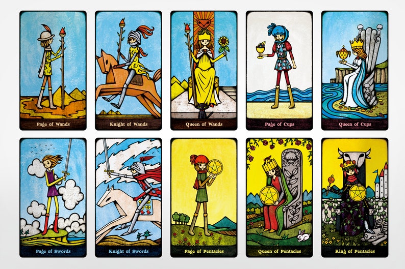 The beautiful 78 cards by Delos are stylized, unique, and spiritually influenced. The Delos tarot 3rd edition is a faithful reproduction of the original deck created by Pamela Colman Smith 1909 under the direction of Arthur Edward Waite.