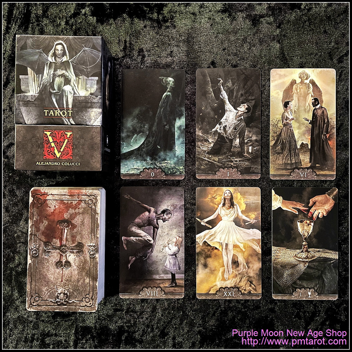 Vampires evoke a world of primal essences, where the boundary between human and monster is blurred beyond recognition. This deck features intense, moody art, setting the stage for the deep work of soul exploration with a backdrop of the struggle between good and evil. These cards remind us that within every human there are monsters, but inside every monster there is humanity.