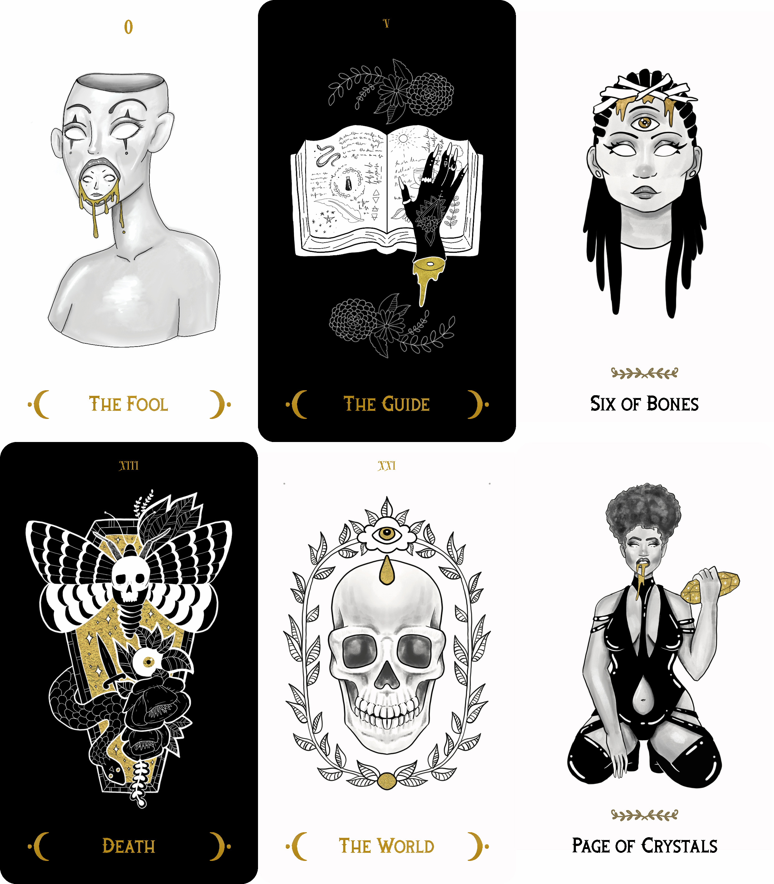 你準備好讓你的皮膚被刮傷了嗎? 你準備好在深夜迷路了嗎? 你準備好擁抱生活在陰影中的一切了嗎? 走進黑暗,釋放你的恐懼。 78 張塔羅牌具有高級設計美學,讓你遠離光並探索自己的影子。