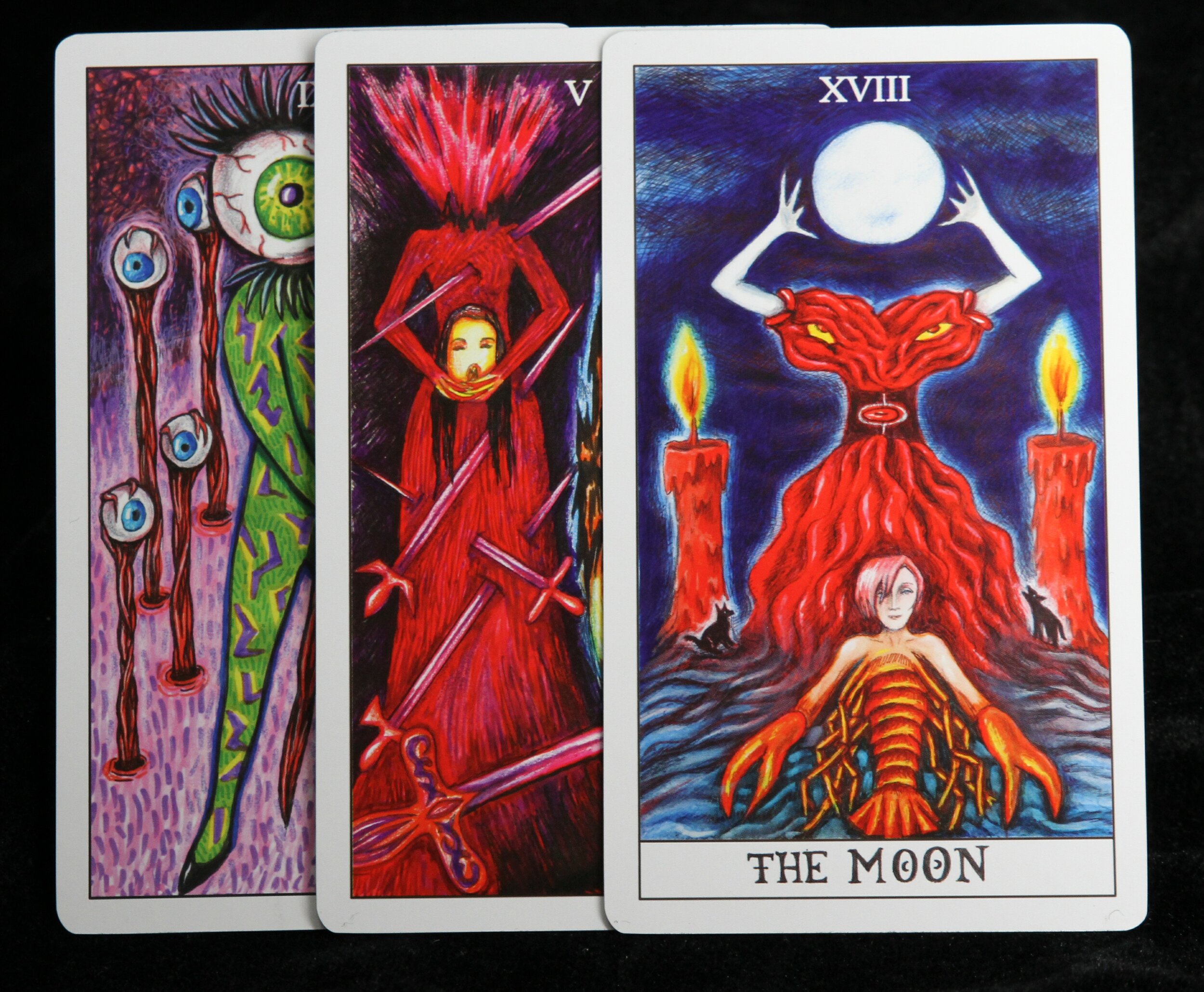 Tarot Oscuro is an original art tarot deck created to reveal the shadow self, unique in creative delivery and deep psychological insight. Often playful, sexual, monstrous, Tarot Oscuro unveils the mysteries of the unconscious mind.