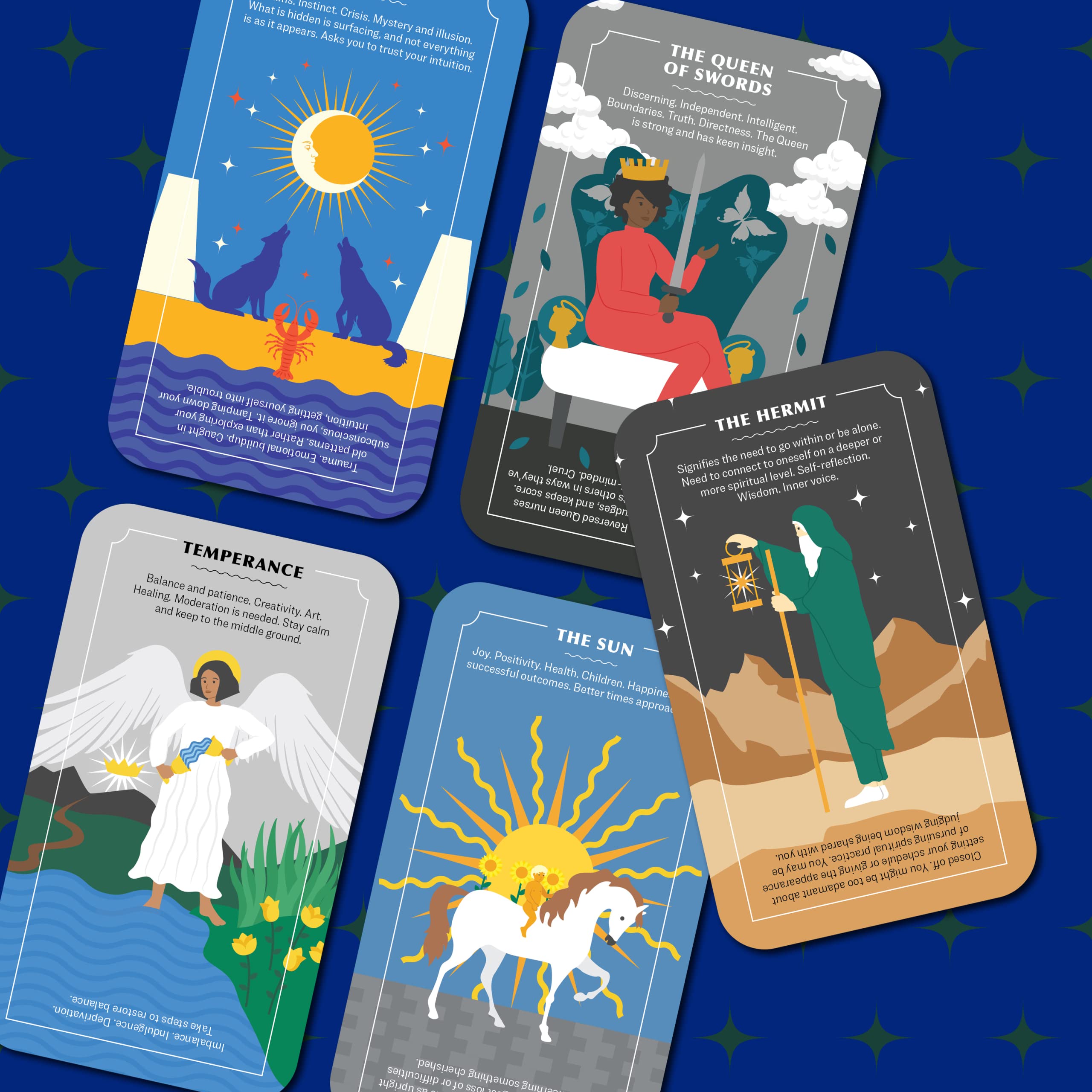 Tarot 101—Each card is printed with a brief explanation of what it means, both upright and reversed, so you can practice giving accurate readings.