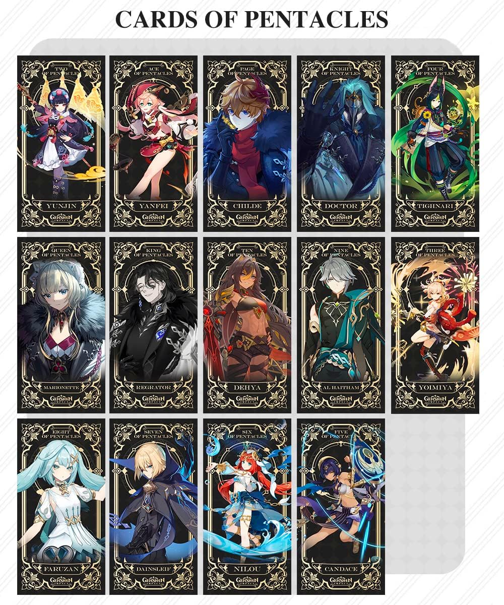 78 Arcana Tarot cards featuring characters from Genshin Impact
