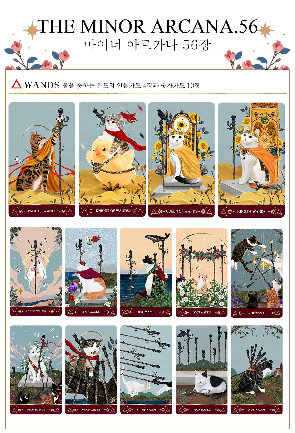 Musecat Tarot 的插圖是應眾多支持者的要求和興趣,以及我的喜愛和熱情而製作的卡片。 我使用了經典的顏色和風格,並處理了符號的細節以及貓的表情,使其易於閱讀,而又不脫離現有的通用等待。