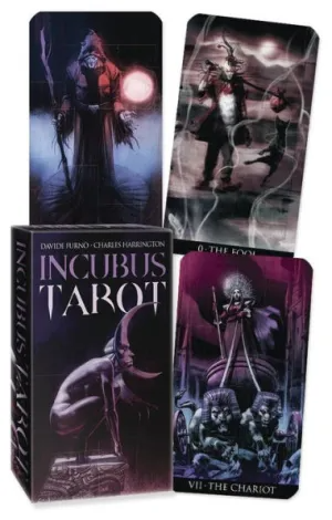 Hiding down in the obscure depths of our consciousness is a world that only reveals itself during sleep, when the mind has fallen into the hands of the subconscious. As your inhibitions fade, the dark lords of Incubus Tarot appear. This nightmare-themed deck by Davide Furnò opens the gate to a dark and barren realm, inhabited by surreal creatures that evoke your innermost fears and challenge you to overcome them. With Charles Harrington's book to guide you, your journey through danger will lead to remarkable insight and confidence.