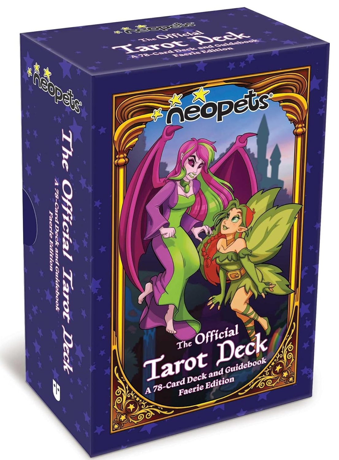 Impress your friends and family with your fortune-telling skills. This officially licensed Neopets tarot deck features 78 of your favorite characters from Neopia, as well as a guidebook to help you thoughtfully interpret your cards. Each illustrated card combination will offer guidance, insight, and reflection with the help of the Neopets faeries. The deck contains all of the traditional major (22 cards) and minor (56 cards) arcana. It can be read as you would a Rider-Waite deck.